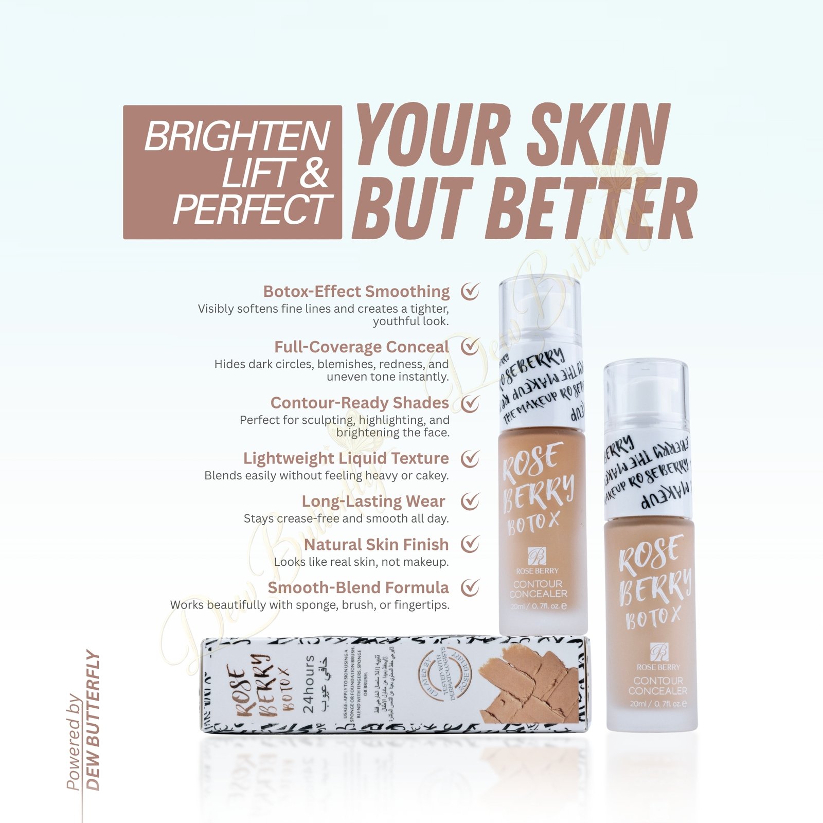 Achieve flawless, all-day coverage with Roseberry Botox Foundation 24H Waterproof. Lightweight, long-lasting, and water-resistant, it smooths, brightens, and perfects your skin for a radiant, natural finish.
