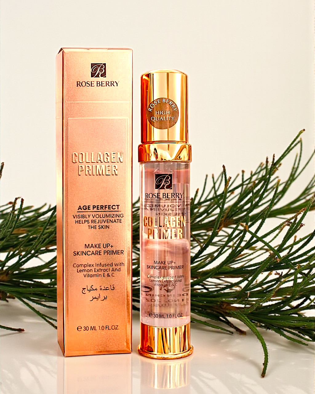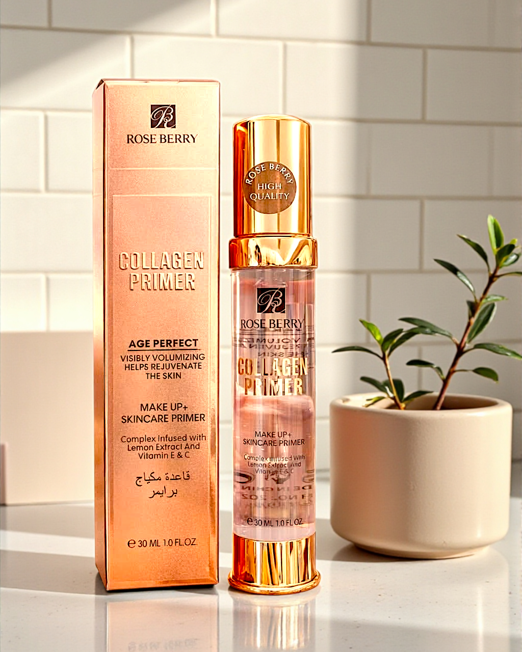 Roseberry Collagen Primer instantly smooths, hydrates, and preps your skin for flawless makeup. Infused with collagen, it blurs pores and fine lines while giving a soft, radiant base that helps makeup last all day.